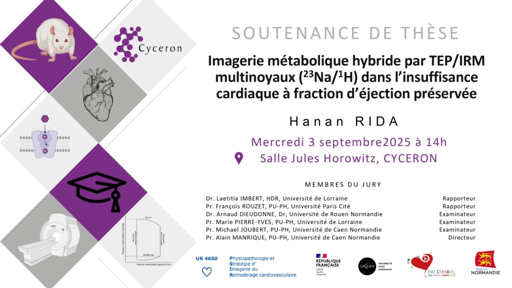 Hanan RIDA a soutenu sa thèse intitulée «  Imagerie métabolique hybride par TEP/IRM multinoyaux (23Na/1H) dans l’insuffisance cardiaque à fraction d’éjection préservée » le mercredi 3 septembre 2025.